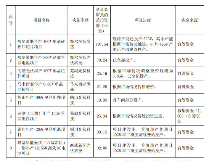 日前,隆基绿能发布了2024年的年度报告,根据其年度报告显示,投资项目进展如下: